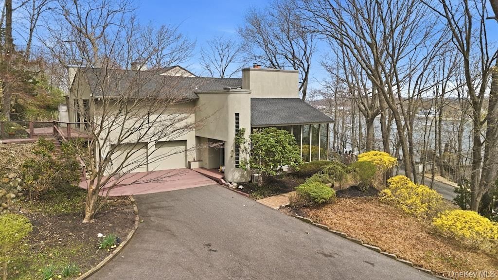 This exceptional 4 bedroom residence blends architectural drama with timeless warmth. Seasonal water views across to Connecticut and of Harbor. Soaring two story glass atrium sets the tone upon arrival flooding the entry with natural light and creating a seamless connection to the surrounding landscape. Inside the home unfolds with character and craftsmanship. The open floor plan with great room, dining room and gourmet kitchen enhanced by two fireplace's is rich with personality and serves as the heart of the home. Dedicated office space on main level offers a perfect quiet work space, alongside the convertible fourth bedroom perfectly suited for guests, exercise room, playroom or more. The floor plan offers 4 bedrooms including serene quarters. Spacious primary suite on second level has wall to wall sliding doors to private deck, a large walk-in closet, and full bath with soaking jacuzzi tub and spa shower. While the second floor living room rises above the landscape with walls of glass that frame the water views and woodlands. The upper level full kitchen/bar creates a dramatic setting for gatherings and celebrations. One full acre with surrounding community beaches. Completing the estate is a separate two bedroom cottage, an exceptional amenity ideal for extended family, guests or providing a discreet investment opportunity. Located within the prestigious Harborfields SD#6 this offering represents a rare convergence of privacy, lifestyle and enduring value in one of Centerports most coveted enclave.